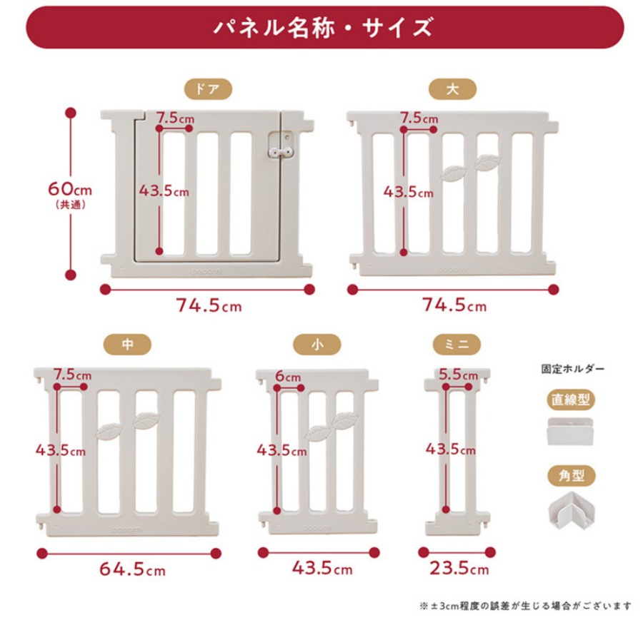 ・ゲートとして使用の際はパネルが軽量のため、つかまり立ちなどで1点に大きな力が加わると転倒の恐れがあります。あくまで間仕切り用としてご使用ください。